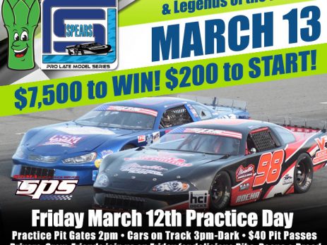 STOCKTON 99 ASPARAGUS CUP 125 - INFORMATION SPEARS SRL Pro Late Model Series ENTER NOW: Heat races will be determined by receipt of completed entry and payment, each submission will be time & date stamped. There will be 5 heat's, top 4 out of each heat will go to the main event. [...]